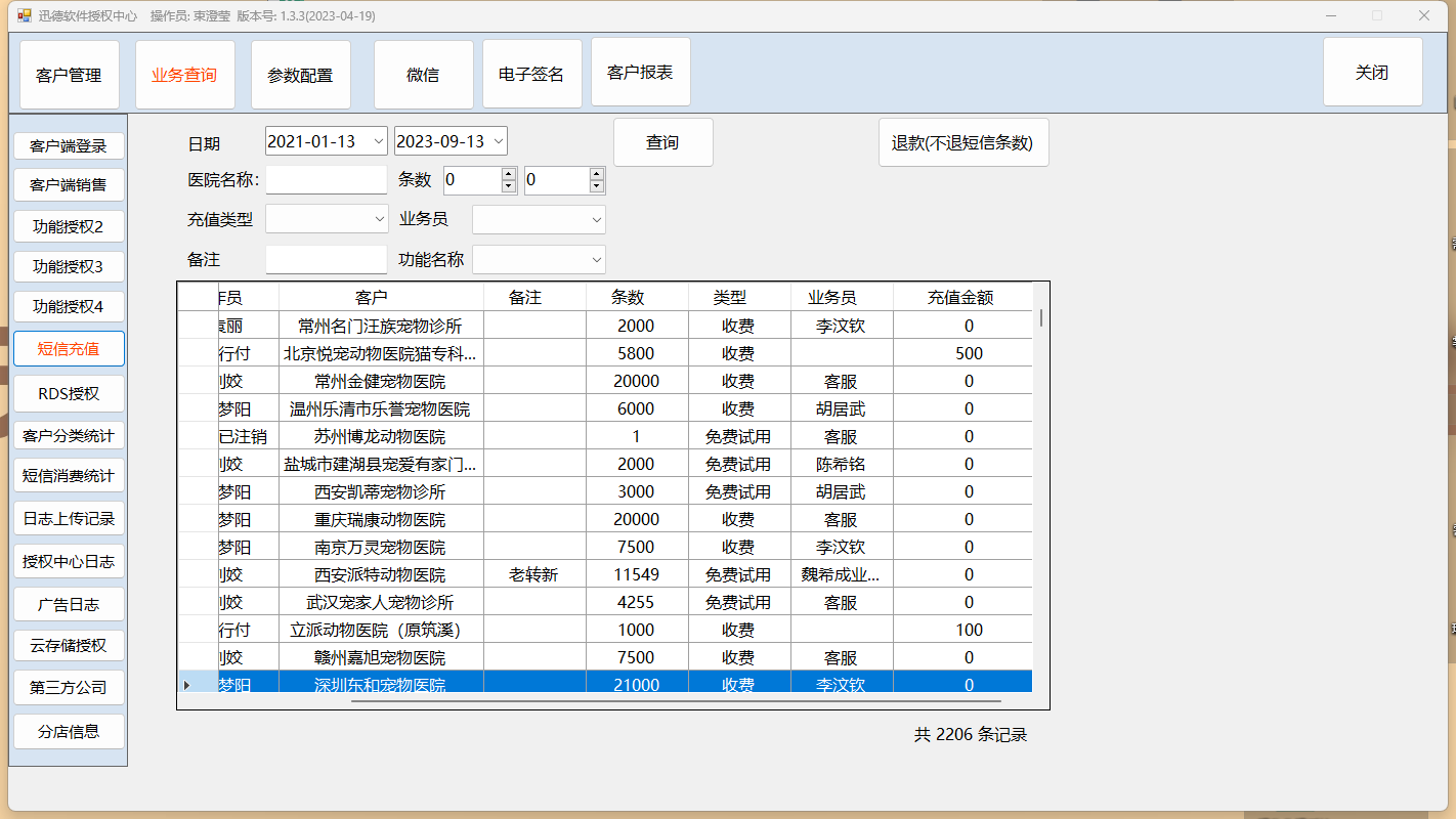 (2)新增报表【短信充值】(内容参考附图,老授权中心。)